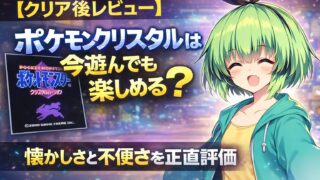 数十年ぶりにポケモンクリスタルをクリア。懐かしさに浸りつつ、今遊ぶからこそ感じた不便さも含めて正直に評価しました。