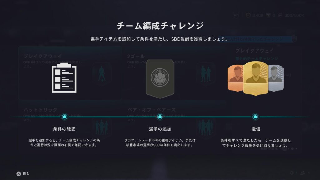 SBCは、指定された条件のチームを提出して報酬を得るシステムです。