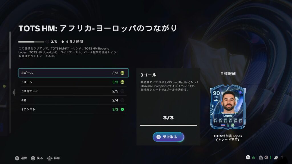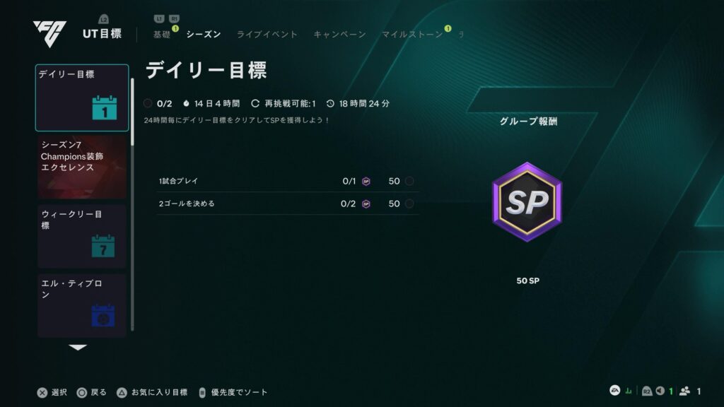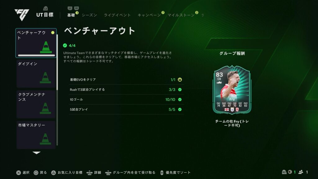 目標達成で獲得できる選手は高レートのものが多かったりで、とりあえずクリアすることをオススメするよ!