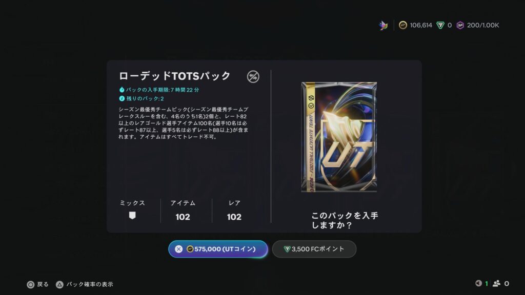 ↑のが画像のように期間限定選手は数が多く、しかも通常パック(ゴールド選手パックなど)からは排出率1%以下とかもザラにあります。