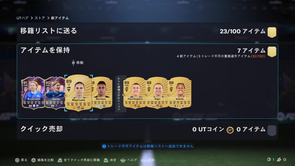 パックで引いた重複選手をSBC用にストックできる機能です。