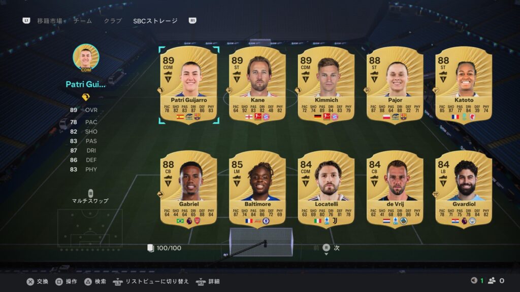 FC26では、SBC用として最大100人まで選手をストックできるようになりました。